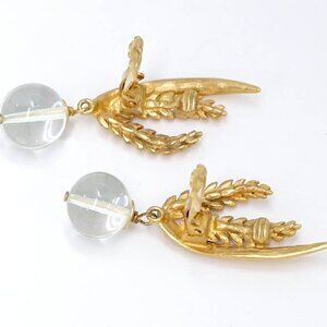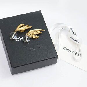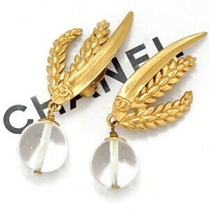 CHANEL CC Logos Clear Stone Wheat Clip-On Earrings Gold Tone 99P Auth w/Box