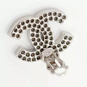 CHANEL CC Logos Clip-On Earrings Silver Tone 03P Auth w/Box l1144