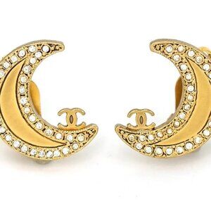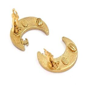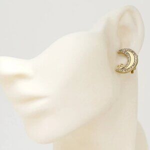 CHANEL CC Logos Crescent Moon Earrings Gold Tone 01P Auth w/Box q1141