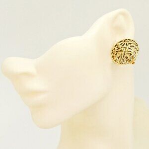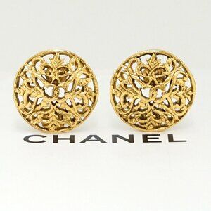 CHANEL CC Logos Filigree Round Clip-On Earrings Gold Tone 26 Auth #2203