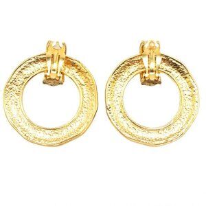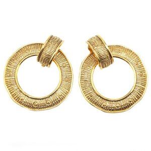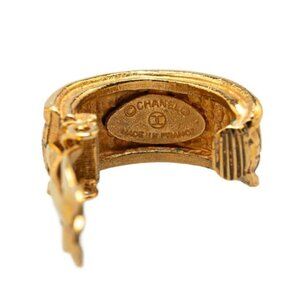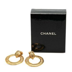 CHANEL CC Logos Hoop 2 way Dangle Clip-On Earrings Gold Tone Auth w/Box #7509