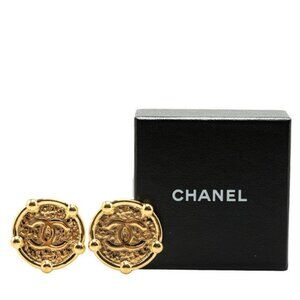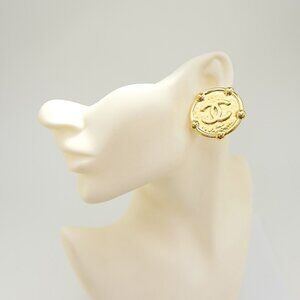 CHANEL CC Logos Large Round Clip-On Earrings Gold Tone 23 Auth #4725