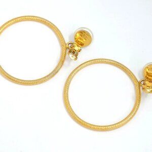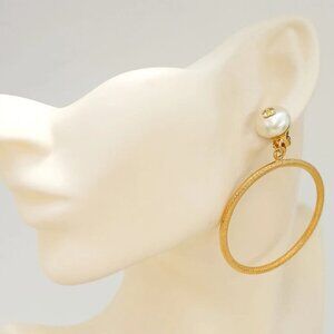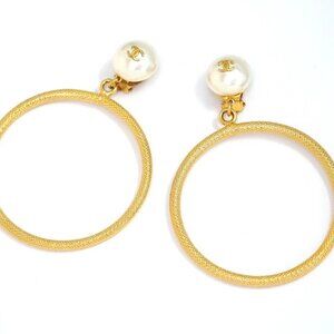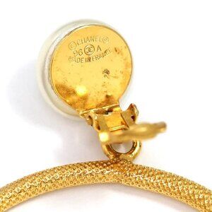 CHANEL CC Logos Pearl Hoop Dangle Clip-On Earrings Gold Tone 96A Auth w/Box