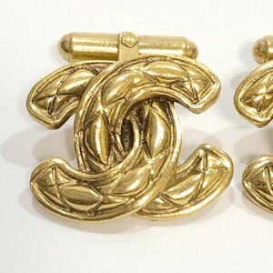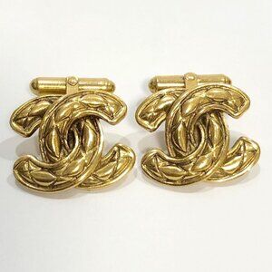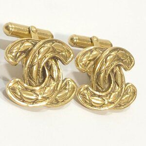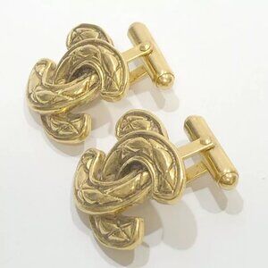 CHANEL CC Logos Quilted Vintage Cufflinks Cuff Links Gold Tone Auth #85212