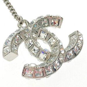 CHANEL CC Logos Rhinestone Drop Stud Earrings Silver Tone Auth D-n1121