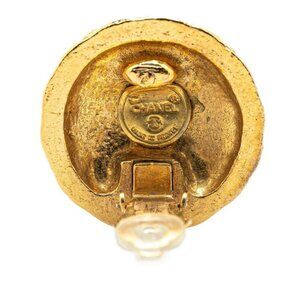 CHANEL CC Logos Round Clip-On Earrings Gold Tone Auth w/Box #94925