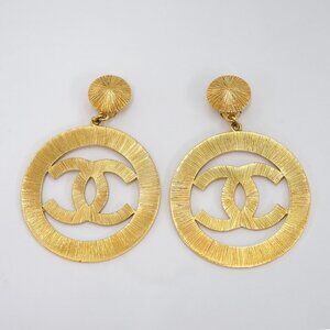CHANEL CC Logos Round Dangle Clip-On Earrings Gold Tone 29 Auth