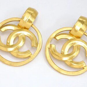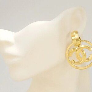 CHANEL CC Logos Round Dangle Earrings Gold Tone 96P Auth #35394