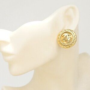 CHANEL CC Logos Round Twist Rope Clip-On Earrings Gold Tone Auth h1132-1