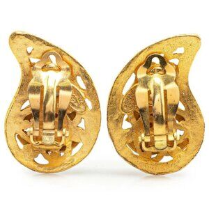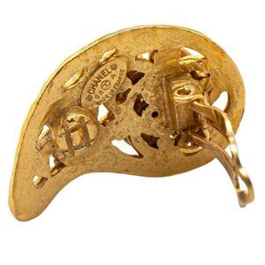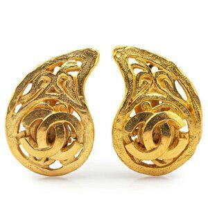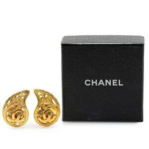 CHANEL CC Logos Teardrop Vintage Clip-On Earrings Gold Tone 95A Auth w/Box #0020