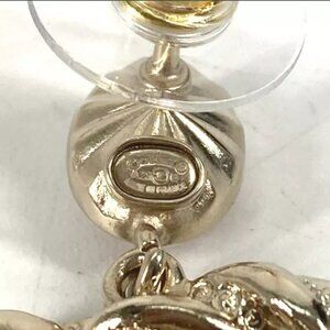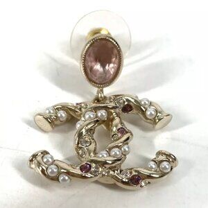 CHANEL CC Logos Twist Rhinestone Pearl Dangle Earrings Gold Tone A23B Auth