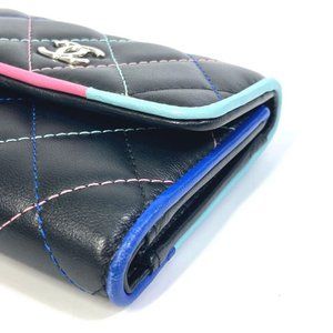 CHANEL CC Mark Small flap Compact wallet Trifold wallet Lambskin Leather Black
