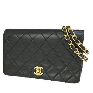 CHANEL CC Mini Matelasse Full Flap Chain Shoulder Bag Leather Black GHW 645LC499