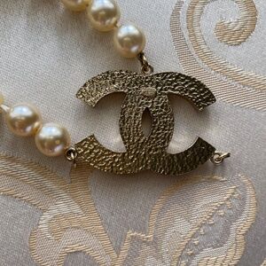 Vintage CHANEL Pearl Chain with Gold and Pearl CC Logo.