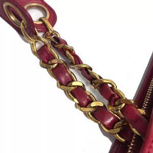 CHANEL CC Turn Lock outside flap Shoulder Tote Chain Shoulder Bag Lambskin Red
