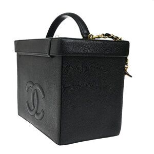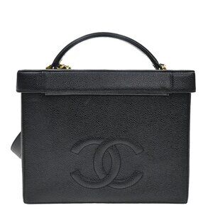 CHANEL CC Vanity 2Way Hand Bag Grained Calfskin Leather BK GHW Vintage 373RL346