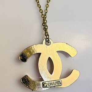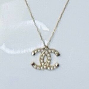 18K gold 18" necklace with CHANEL charm for glamour or casual. Overlapping CC's are a golden shine and adorned with tiny pearls. Please refer to pics for all measurements. Priced to sell.
