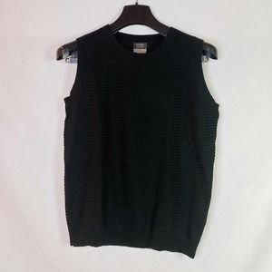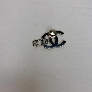 CHANEL CC logo crystal brooch with sweater vest and cardigan