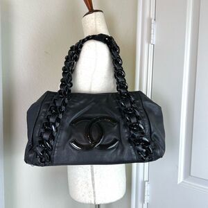 đRare !! This is a unique one of a kind stunning shoulder bag, itâs black on black with black metallic straps! In like new condition
