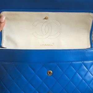 CHANEL CLASSIC FLAP 2.55 BLUE • Medium large vintage bag with gold mademoiselle chain • good preowned condition • dust bag included • white lamb interior. Exactly as pictured. NO TRADES ❌ NO DISCOUNTS ❌