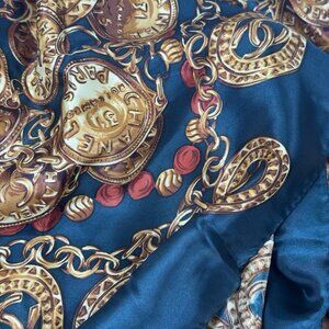 iconic interlocking "CC" logo of Design: Chanel, chains, and what appear to be coins or medallions.