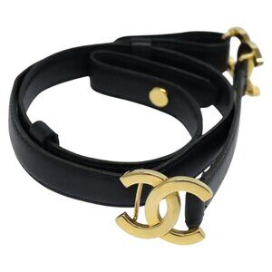 CHANEL COCO Mark Belt Leather 26.4"" Black Gold CC Auth