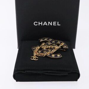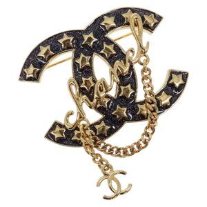 CHANEL COCO Mark Brooch metal Gold CC Auth BA4087M