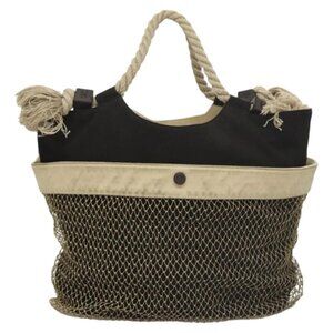 CHANEL COCO Mark Camelia Tote Bag Canvas Black Silver CC Auth BA1683