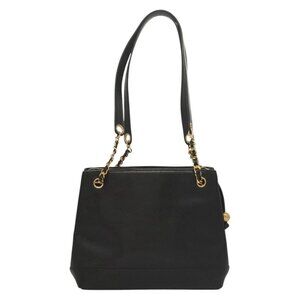 CHANEL COCO Mark Chain Shoulder Bag Grained Calf Skin Black Gold CC Auth 132292