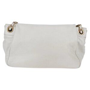 CHANEL COCO Mark Chain Shoulder Bag Leather White Gold CC Auth 128068V