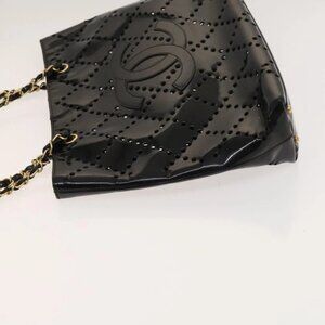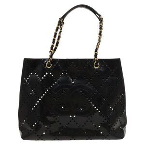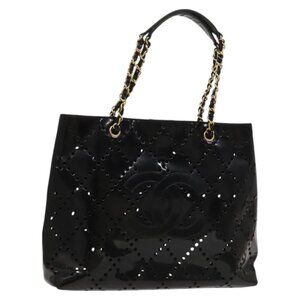 CHANEL COCO Mark Chain Tote Bag Patent leather Black Gold CC