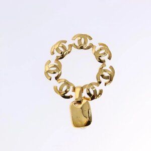 CHANEL COCO Mark Earring Metal Gold CC Auth 135951V