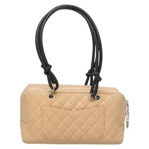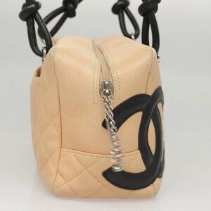 CHANEL COCO Mark Matelasse Cambon Line Shoulder Bag Leather Beige CC Auth 120187