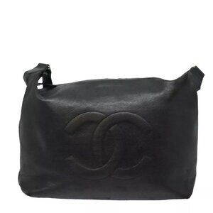 CHANEL COCO Mark Shoulder Bag Caviar Skin Black CC Auth