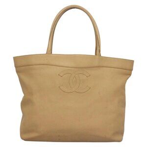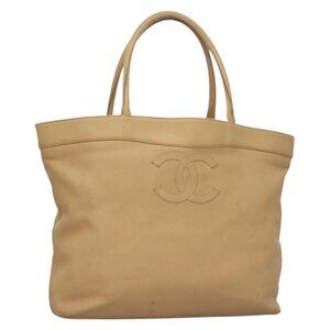 CHANEL COCO Mark Tote Bag Grained Calf Skin Beige Gold CC