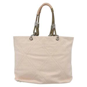 CHANEL COCO Mark Tote Bag No.5 Canvas White Silver CC Auth gh524