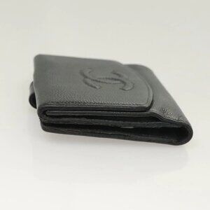 CHANEL COCO Mark Wallet Grained Calf Skin Black CC Auth SW1075