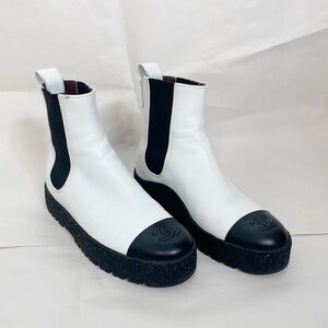 CHANEL Calfskin Cap Toe CC Turn lock Ankle Boots
