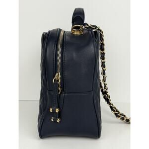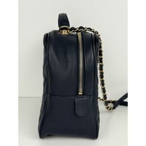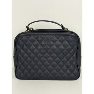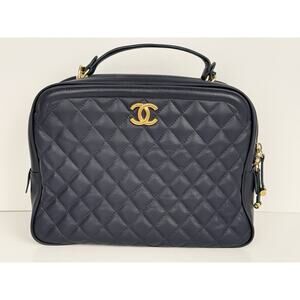 CHANEL Calfskin Quilted CC Medium Vanity Case Navy Blue Gold Hardware B-5