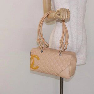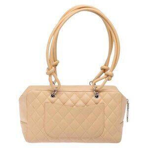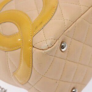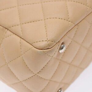 CHANEL Cambon Line Matelasse Shoulder Bag Lamb Skin Beige Silver CC Auth 139413