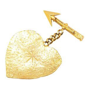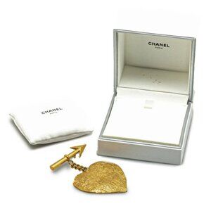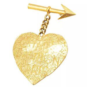CHANEL Cambon PARIS Arrow Heart Brooch Gold Tone 93A Pin Auth