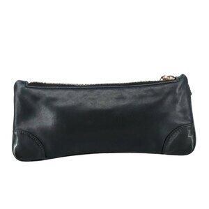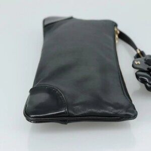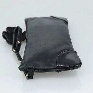 CHANEL Camelia Clutch Bag Lamb Skin Black Silver CC Auth 108816