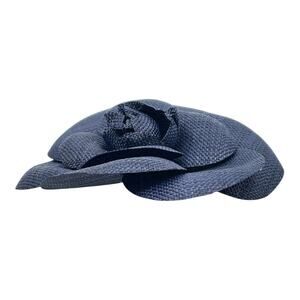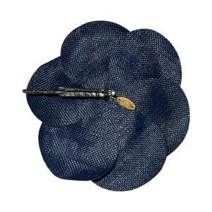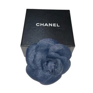 CHANEL Camellia Brooch Corsage Navy Organza W/ Box