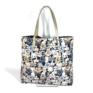 CHANEL Cat Choupette Camellia Cat Tote bag with pouch Shoulder Bag blue/Gold