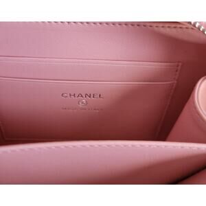 CHANEL Caviar Quilted Striped CC Filigree Clutch With Chain Pink White