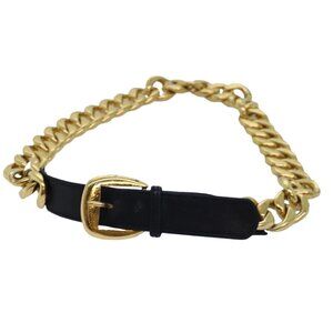 CHANEL Chain Belt metal 31.1"""" Gold Black CC Auth bs14988