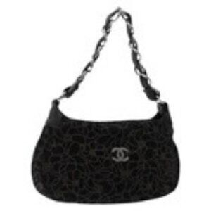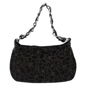 CHANEL Chain COCO Mark Camelia Shoulder Bag Suede Black Silver CC Auth BA4776