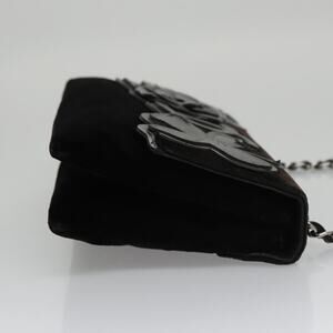 CHANEL Chain Camelia Shoulder Bag Velor Leather Black Silver CC