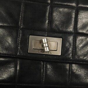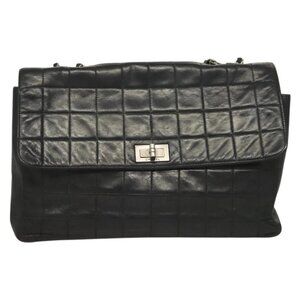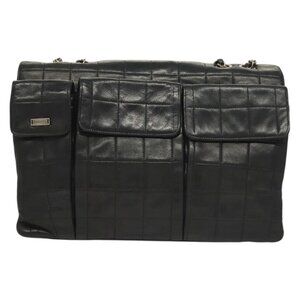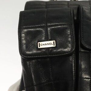 CHANEL Chain Choco Bar line Shoulder Bag Lamb Skin Black Gold CC Auth
