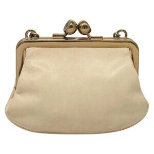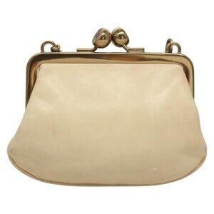 CHANEL Chain Gamaguchi Pouch Lamb Skin Beige CC Auth 132806